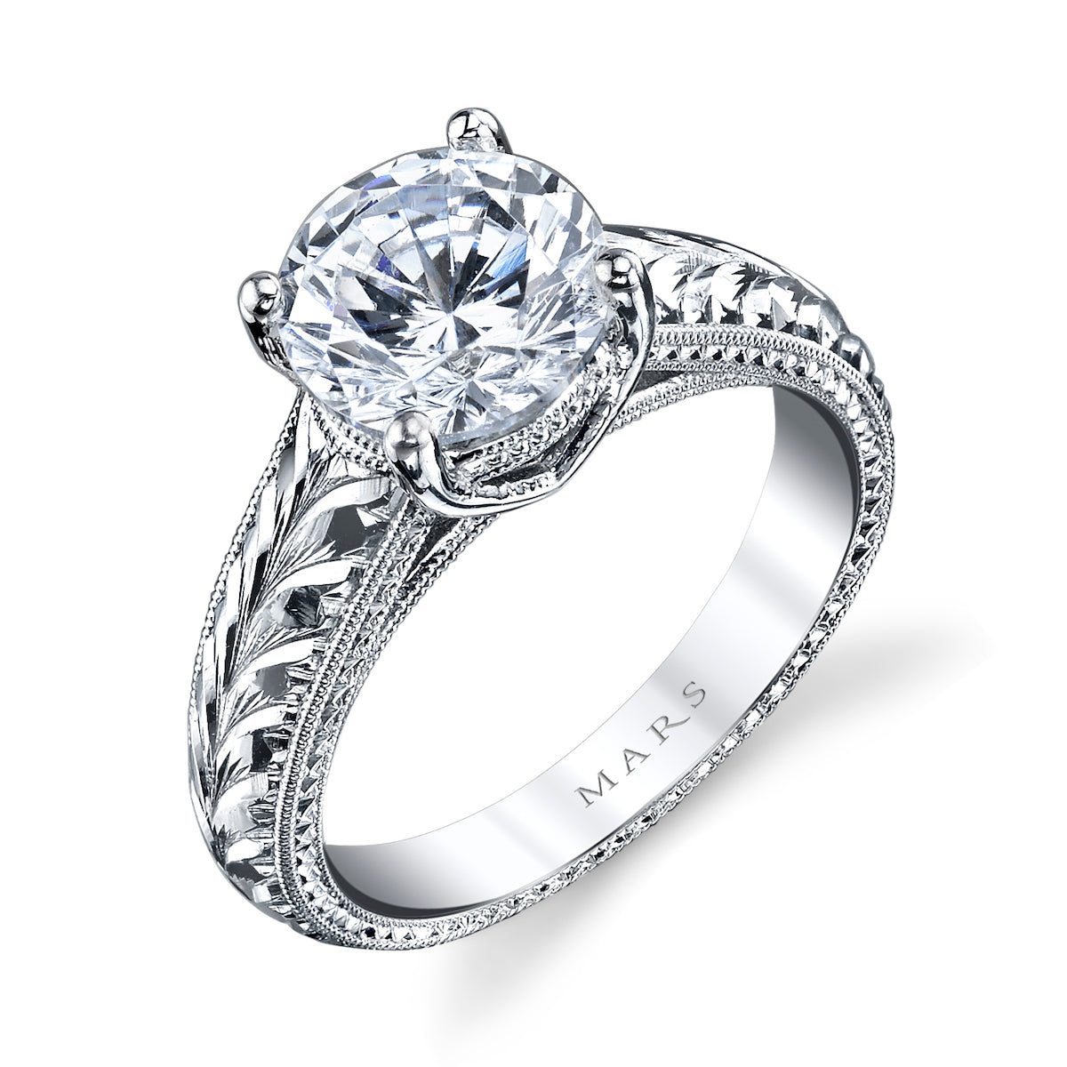 Experience the timeless beauty of our Mars Round Engagement Ring. Crafted from the finest 14K White Gold, this vintage-inspired ring features a 4 prong center and delicate milgrain edging. Embrace the classic elegance and make a statement of everlasting love.