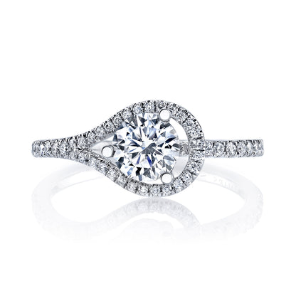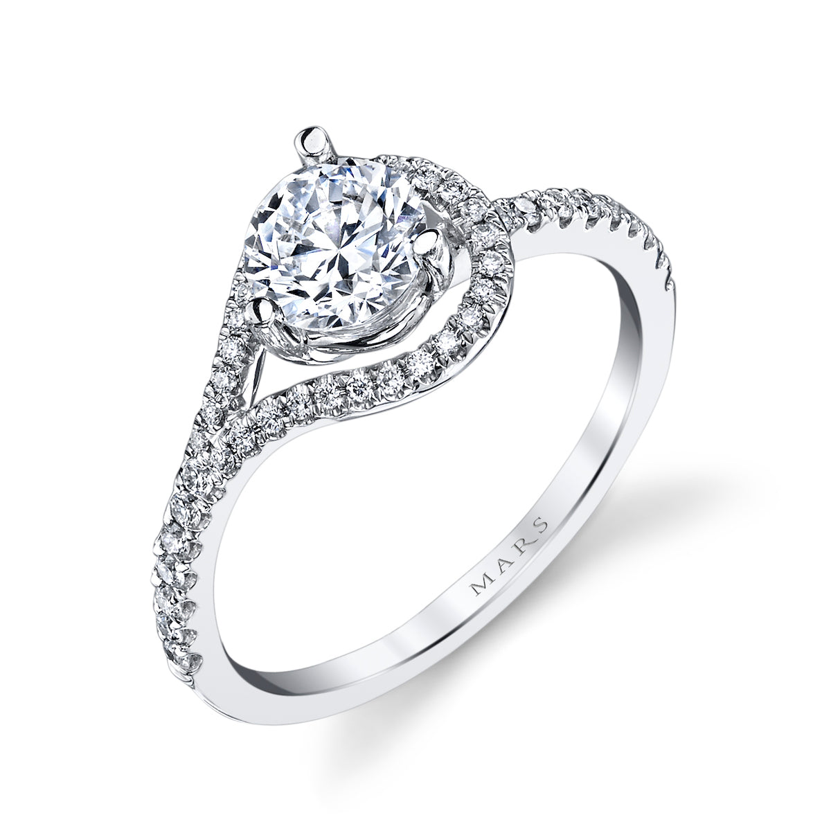 The Mars Round Engagement Ring exudes luxury with its 14K White Gold band and dazzling display of 0.24 carats of round cut diamonds set in an elegant swirl design.