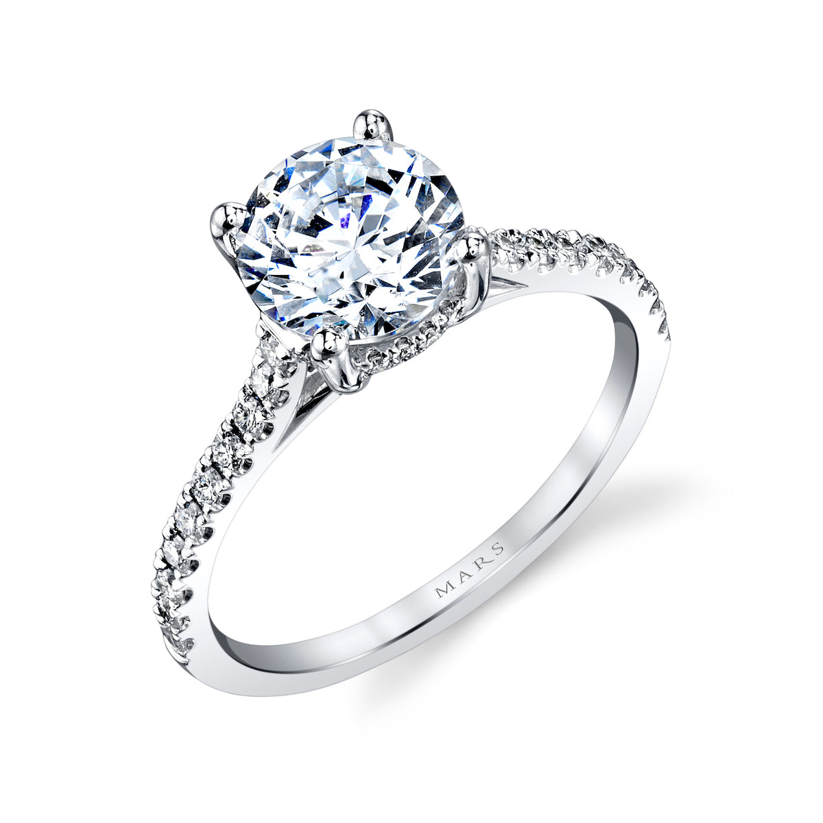 Mars Round Engagement Ring with Hidden Halo 14K White Gold 27039RD