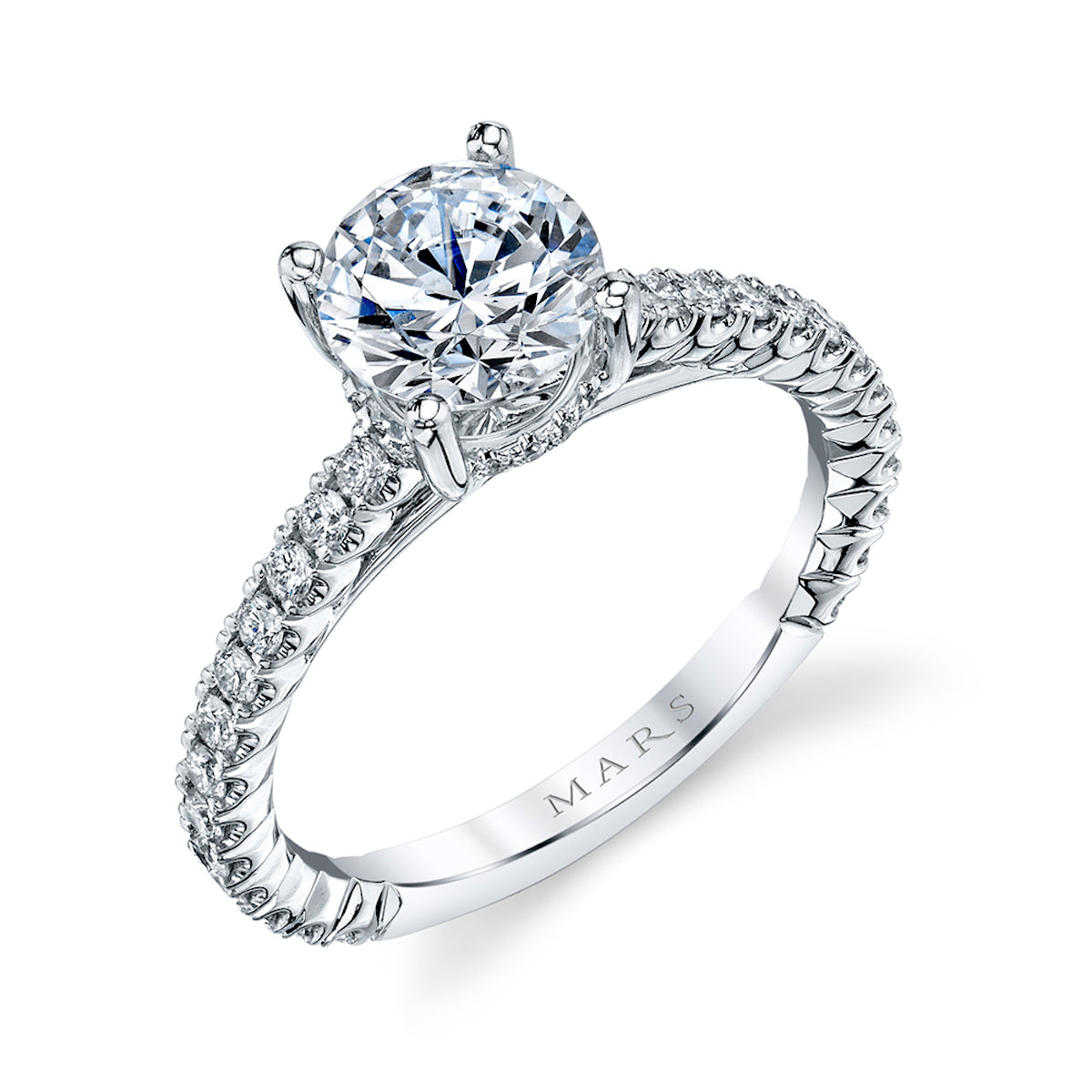 Round Engagement Ring with Hidden Halo 14K White Gold