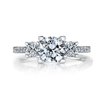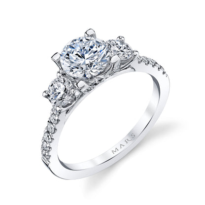 The exquisite Mars Round Engagement Ring is crafted from 14K White Gold and sparkles with a total of 0.46 carats of round brilliant cut diamonds on the sides. With its 3-stone style designer setting, this ring is sure to captivate and enchant.