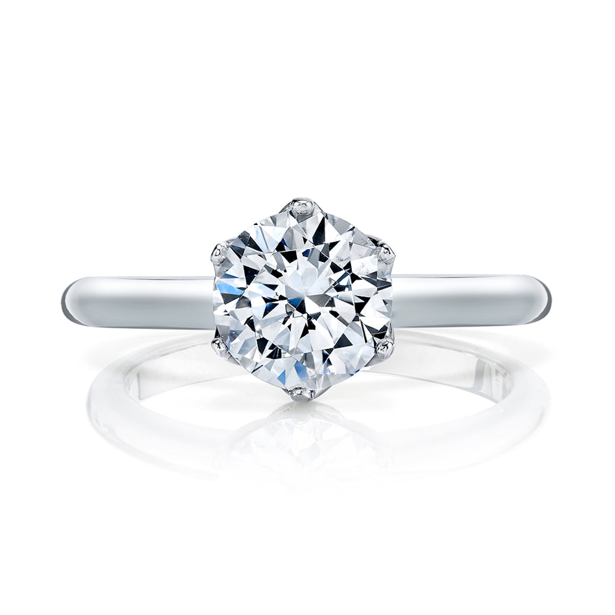 Experience elegance and tradition with the Mars Round Engagement Ring, crafted from 14K white gold. This exquisite, hand-crafted ring features a classic round cut solitaire that will captivate and delight for a lifetime.