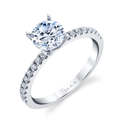 The luxurious Mars Round Engagement Ring boasts a stunning 0.21 crt of round cut diamonds on the sides, elegantly set in 14K White Gold with a prong style setting.