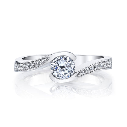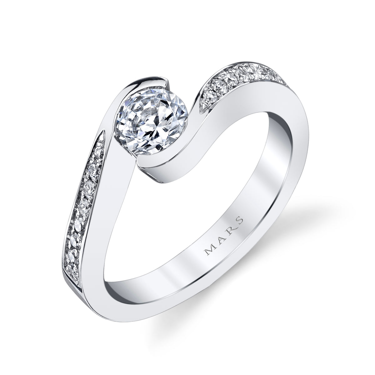Capture the beauty and elegance of your love with the Mars Round Engagement Ring in 14K White Gold. This stunning piece features 0.15 carats of dazzling French pave in a unique bezel-style swirl setting.