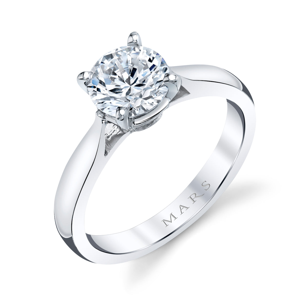 The stunning Mars Round Engagement Ring in 14K White Gold offers a dazzling cathedral-style solitaire design, perfect for those who appreciate timeless elegance and sophistication.