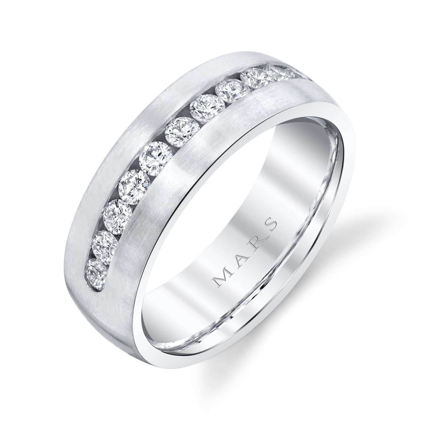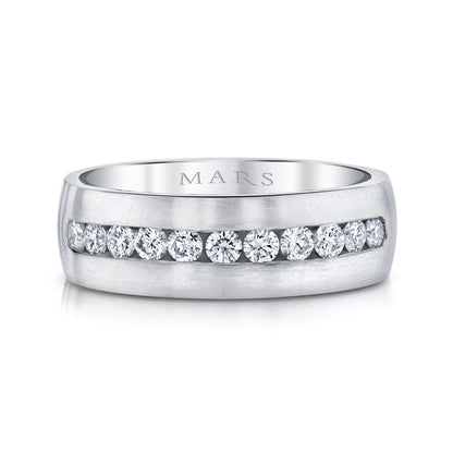 This men's wedding band features a robust 7mm width with a sophisticated satin finish, offering a modern yet timeless appeal. Approximately 0.70 carats of round diamonds are expertly set in a secure channel setting, adding a brilliant sparkle without compromising comfort. Designed for durability and style, this band seamlessly combines elegance and strength, making it the perfect symbol of commitment for him. Whether worn daily or for special occasions, it provides a bold statement of enduring love and refined taste.