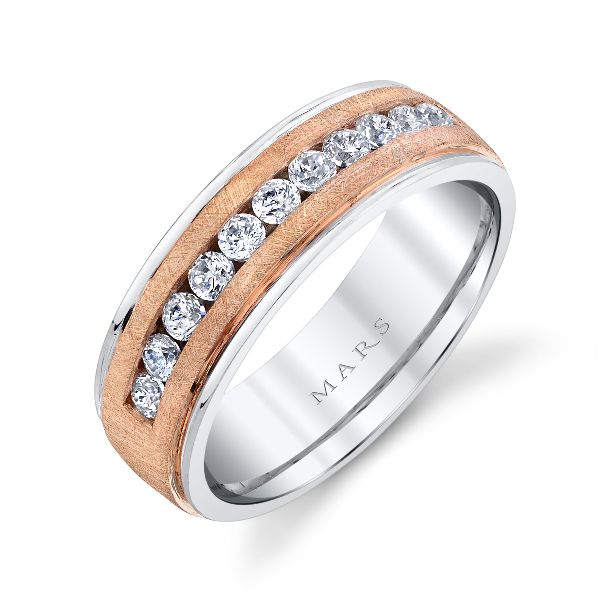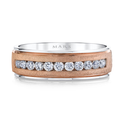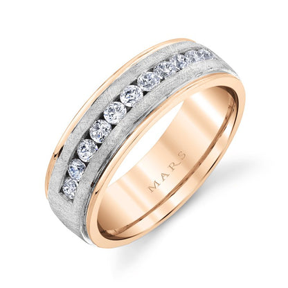 Elevate your commitment with this Men's 7mm Two Tone Wedding Band, expertly crafted for enduring style and strength. Featuring a sophisticated brushed finish, this band blends the warmth of two metals in a seamlessly polished design. Set with approximately 0.60 carats of brilliant diamonds securely nestled in a sleek channel setting, it offers subtle sparkle without compromising durability. Perfect for celebrating your lifelong journey, this ring balances modern elegance with classic craftsmanship, making it a lasting symbol of your love and devotion.