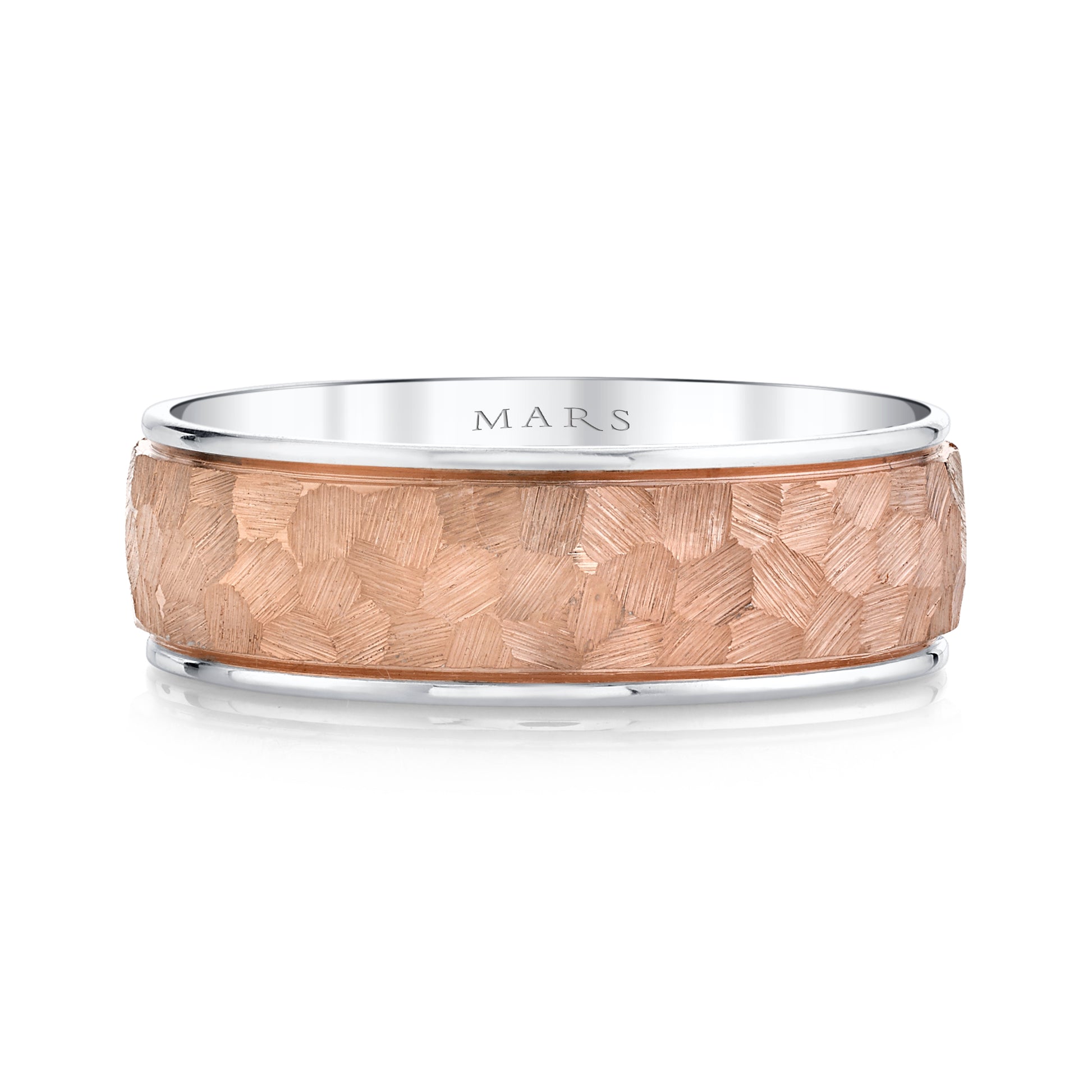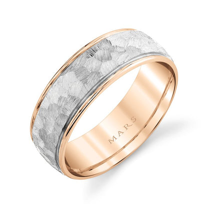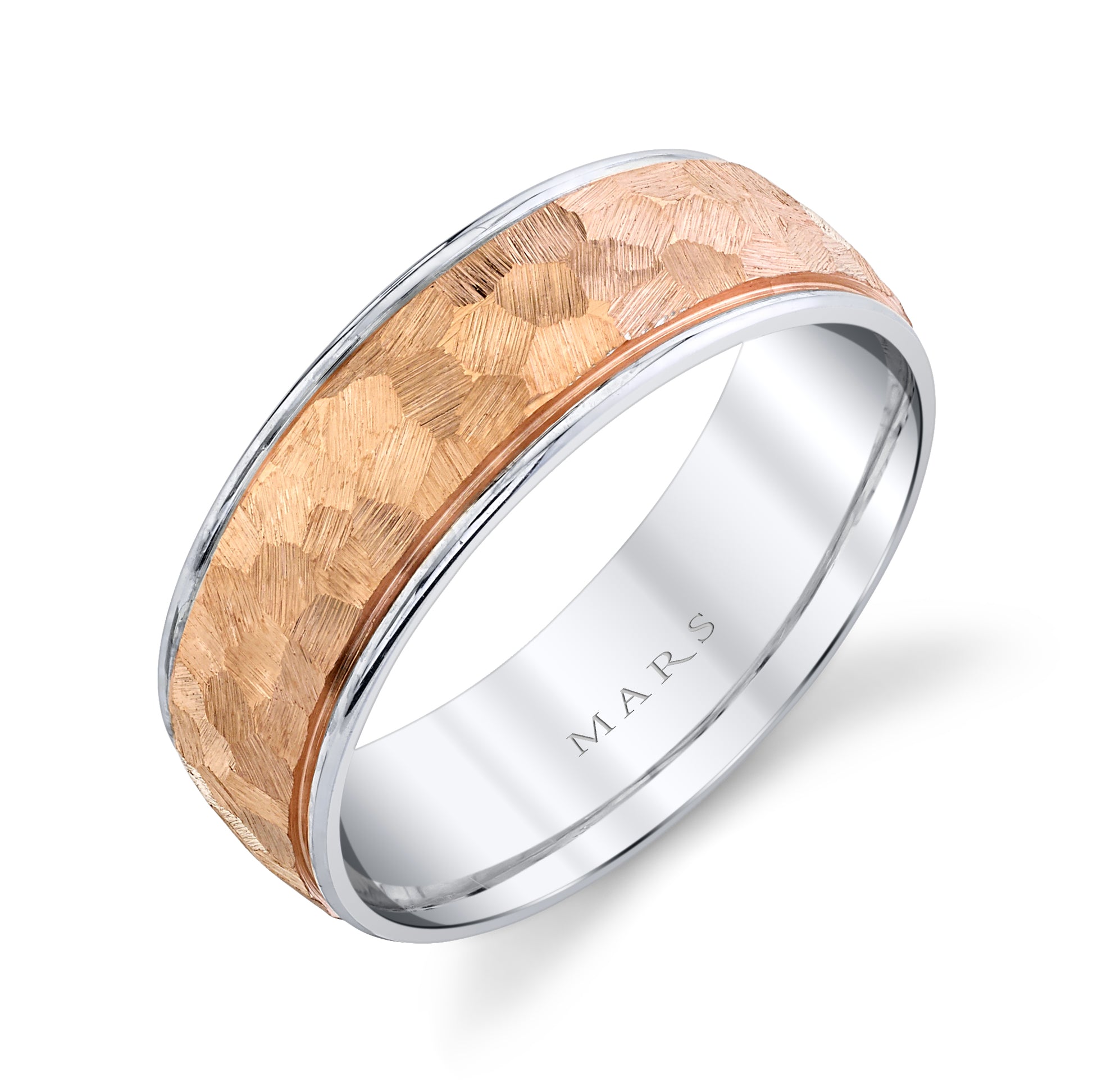 Men's 7mm Two Tone Hammered Finish Wedding Band