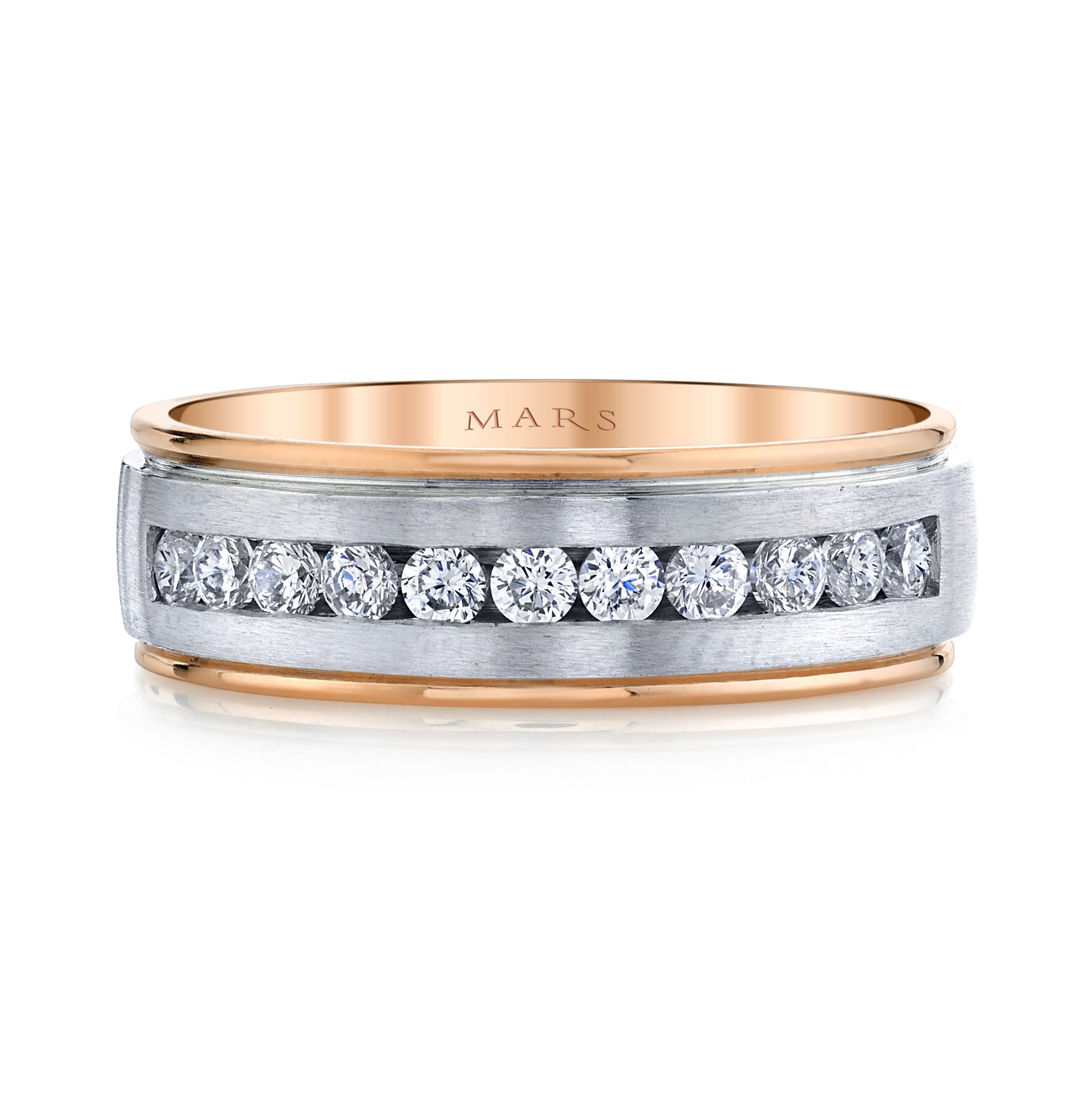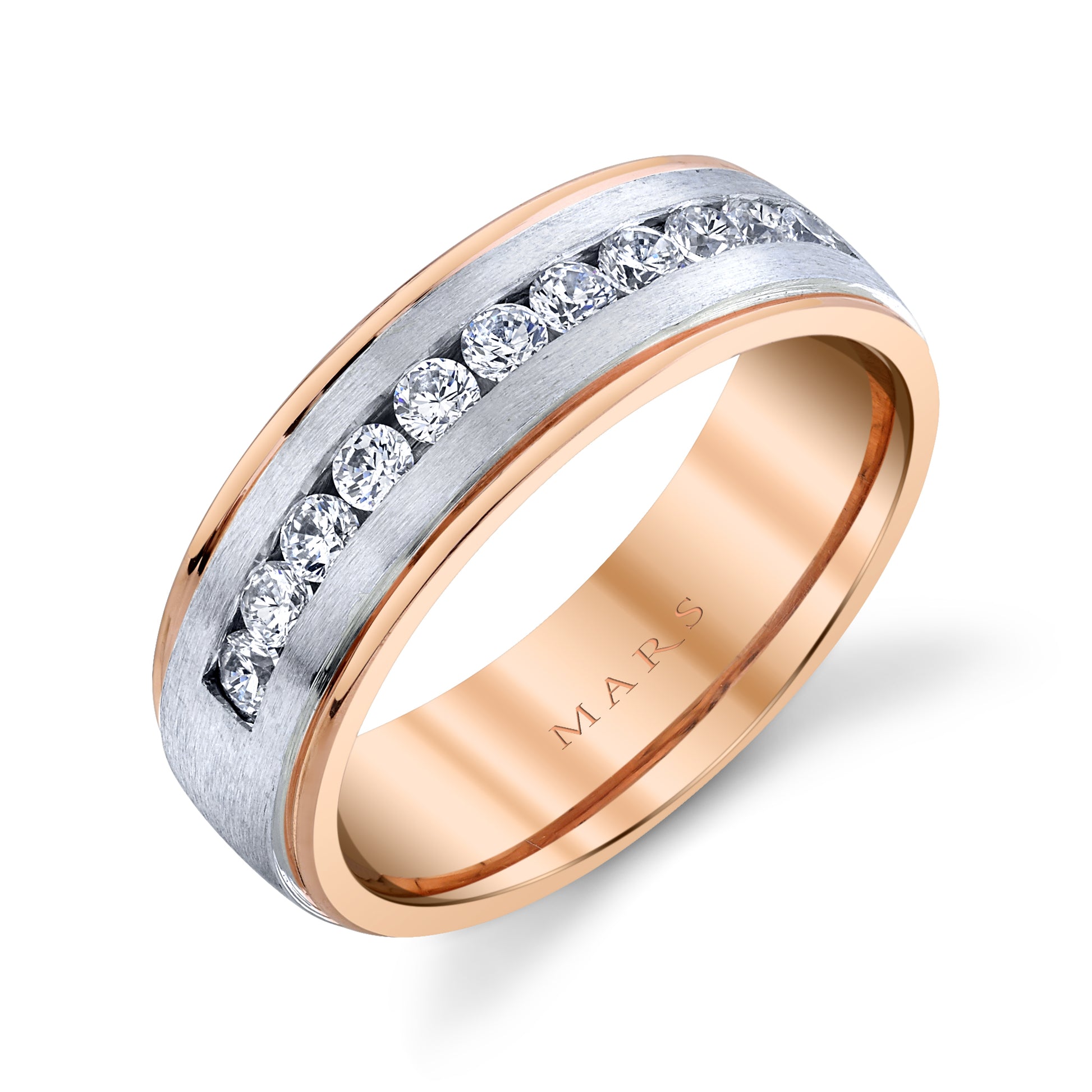 Elevate your commitment with this Men's 7mm Two Tone Satin Finish Wedding Band, designed to blend timeless elegance with modern style. The band features a sophisticated satin finish in two contrasting tones, creating a striking yet versatile look suitable for everyday wear or special occasions. Highlighted by approximately 0.60 carats of round diamonds expertly set in a secure channel setting, this ring adds a subtle sparkle without sacrificing durability. Crafted for comfort and lasting beauty, this wedding band makes a powerful statement of love and style that will stand the test of time.