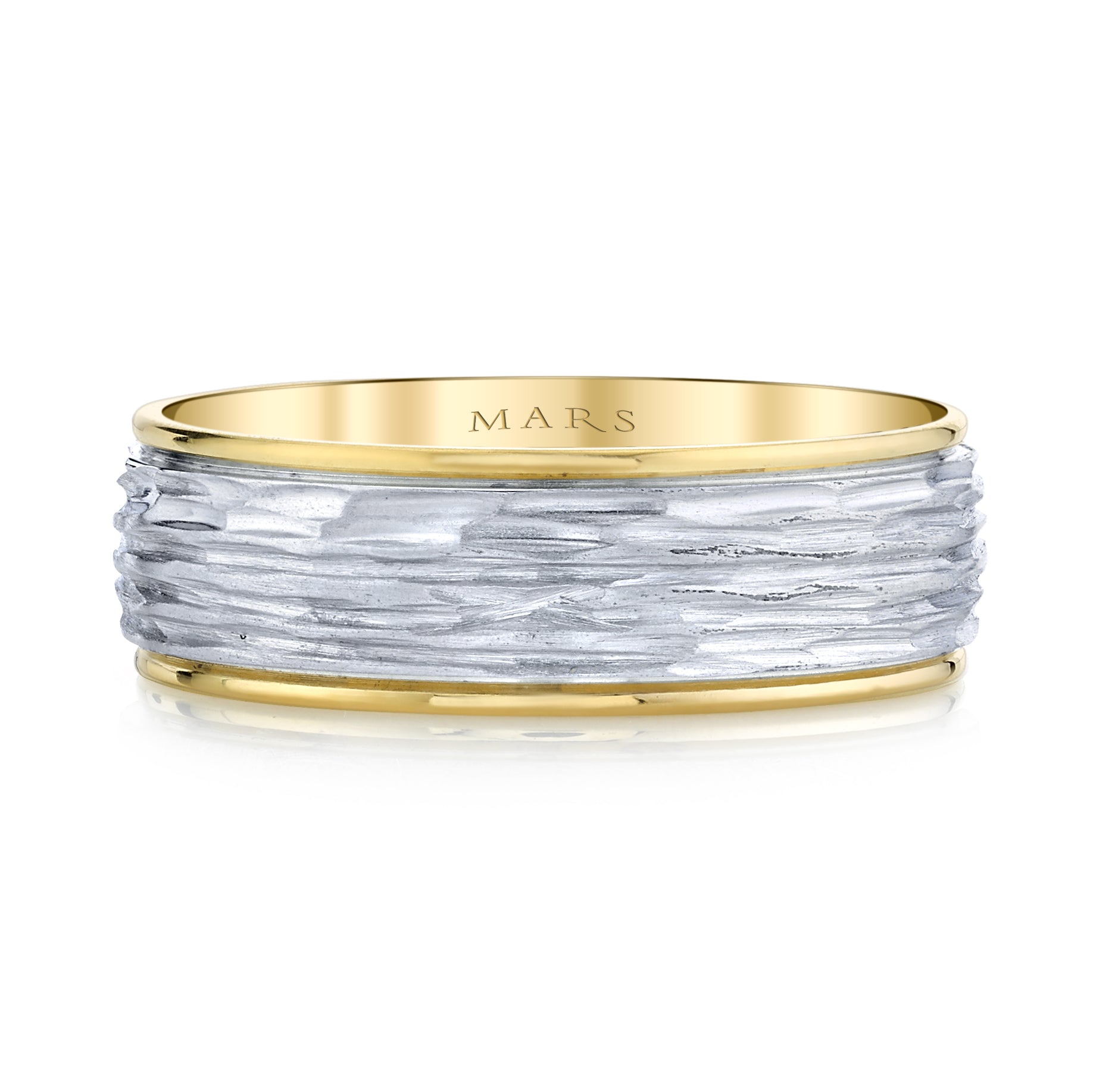 Elevate your commitment with the Men's 7mm Two Tone Wave Finish Wedding Band, a striking blend of durability and style. Crafted for the modern man, this 7mm band features a unique wave finish that captures light and attention, while the two-tone design adds depth and sophistication. Perfect for daily wear, its sturdy construction ensures long-lasting comfort and resilience through every moment of your life together. This wedding band symbolizes strength and elegance, making it an ideal choice to celebrate your enduring love with a look that stands apart.