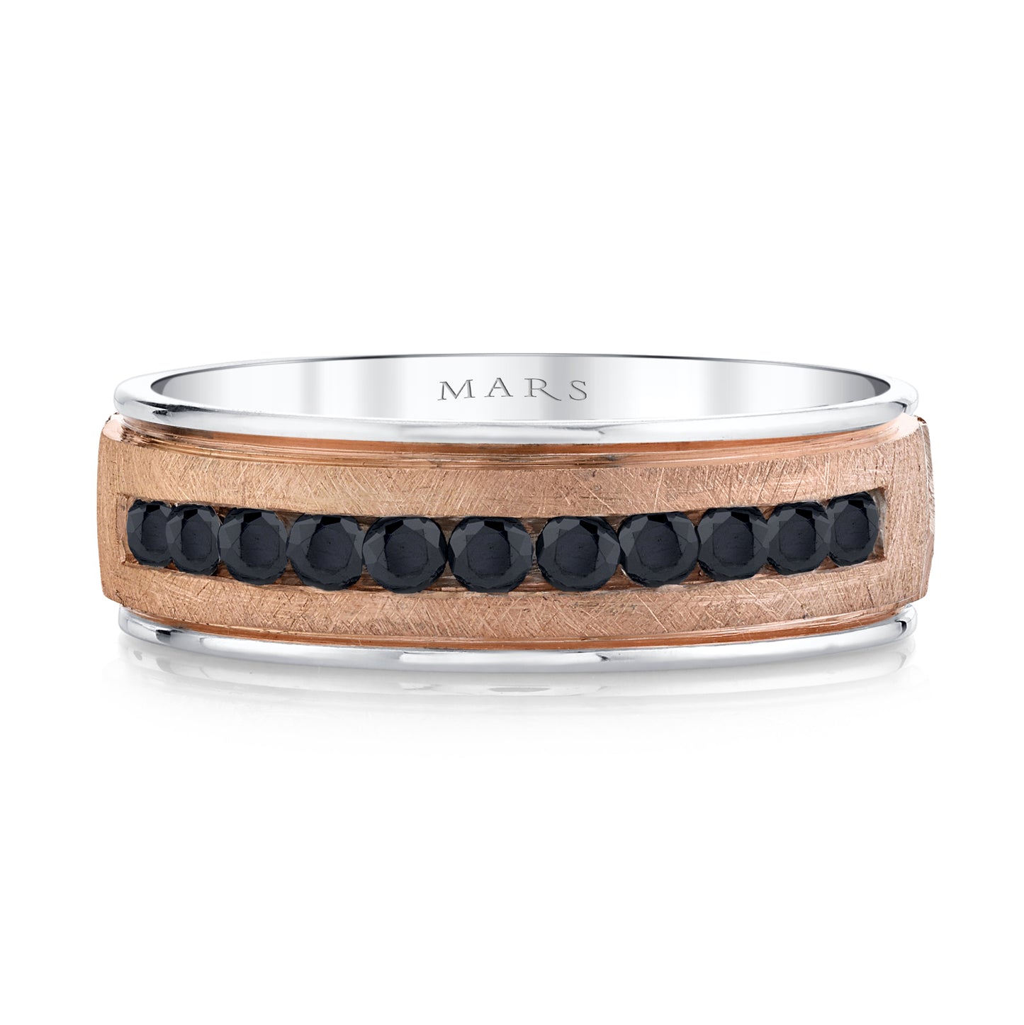 Men's 7mm Two Tone with 0.85 CRT Black Diamond Stone Brush Finish Wedding Band