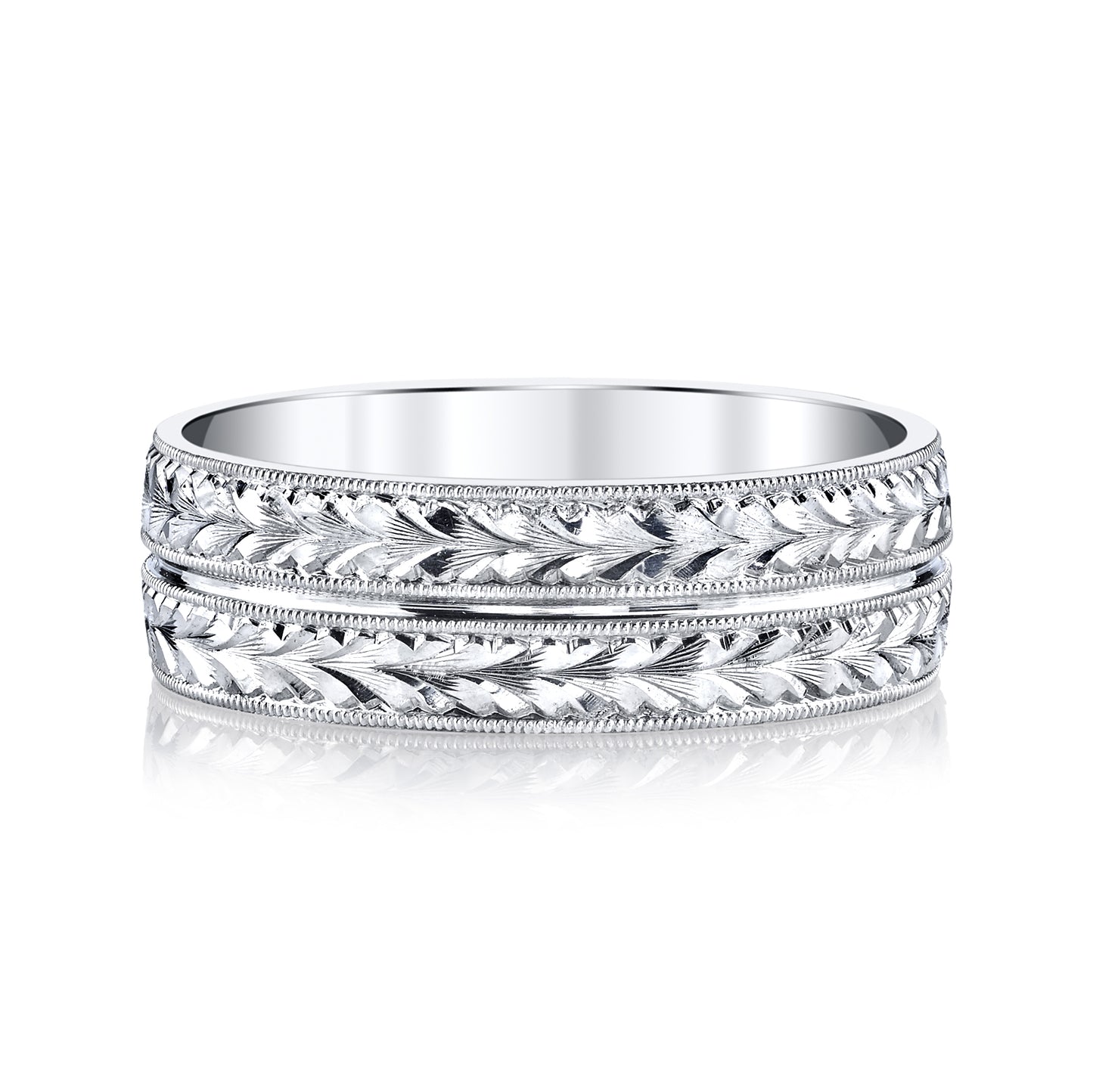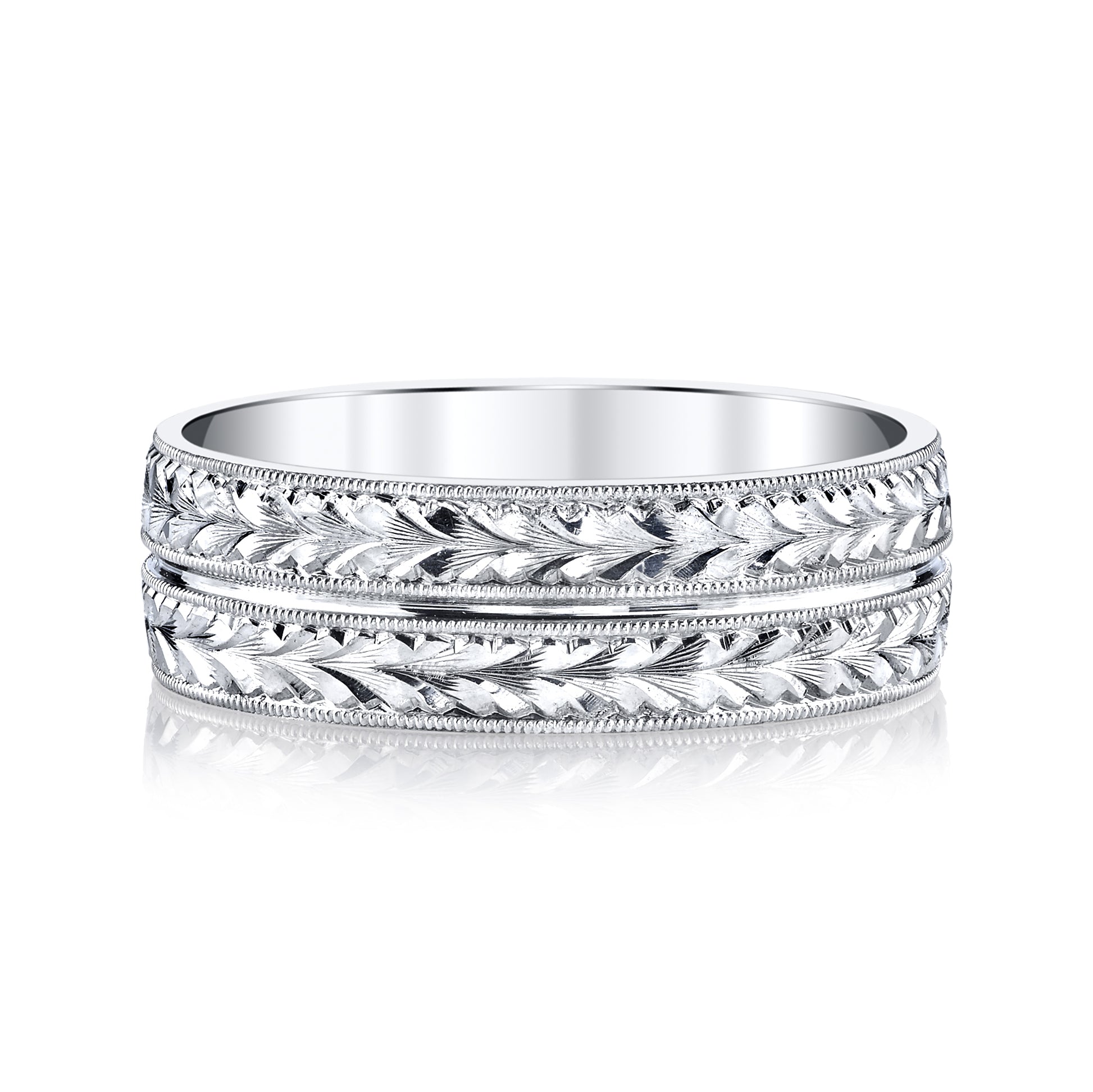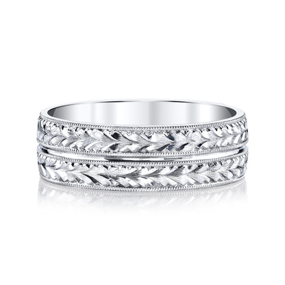Men's 7mm Wedding Band Wheat Motif with Milgrain Edging