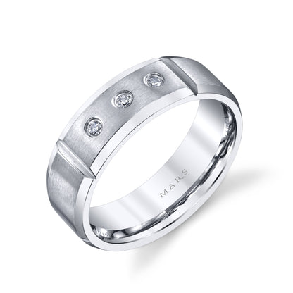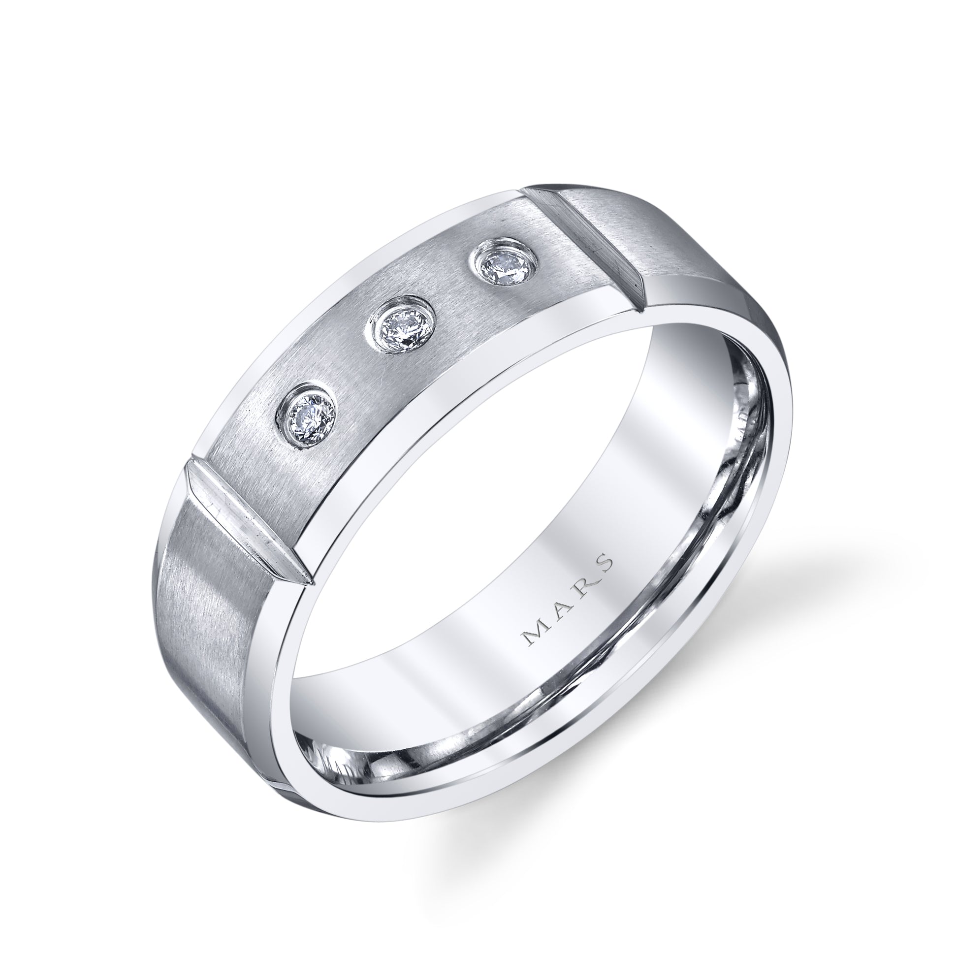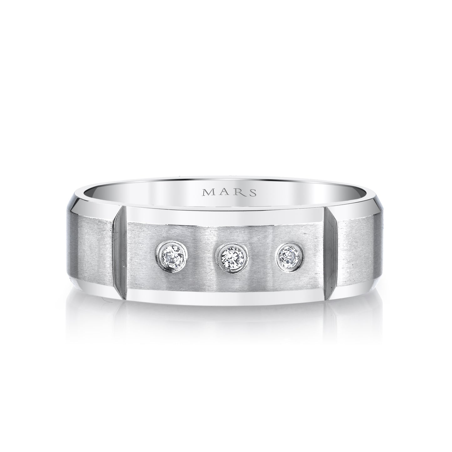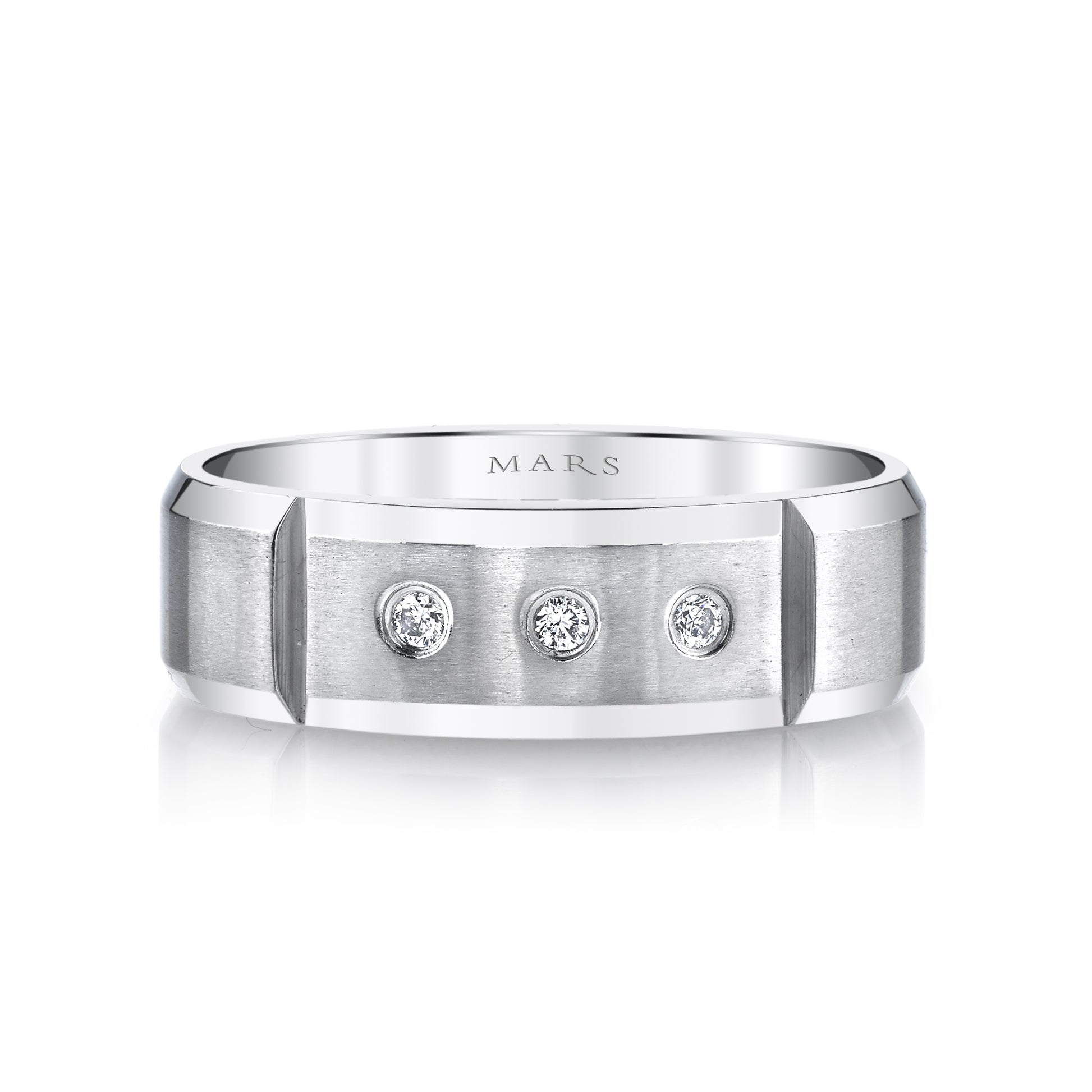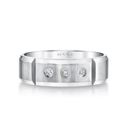 Men's Three Stone Bezel Set Brushed Finish with Beveled Edge Wedding Band