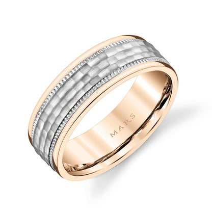 Men's Two Tone 7mm Satin Hammer with Milgrain Edge Wedding Band