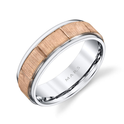 Men's Two Tone Vertically Grooved with Brushed Finish Wedding Band