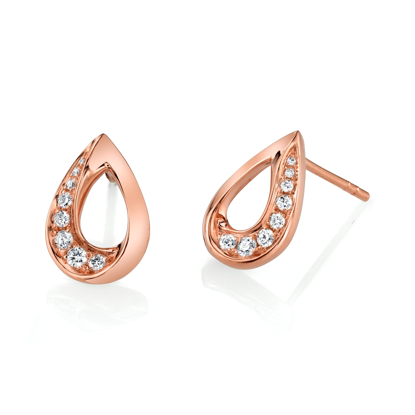 These 14k rose gold open teardrop studs feature sparkling 0.19-carat round diamonds, adding a touch of elegance and brilliance to any look.
