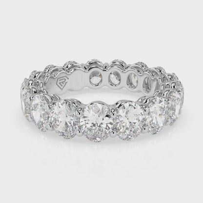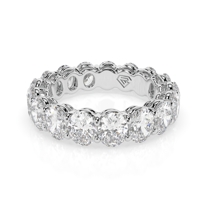 Fall in love with our Oval Cut Diamonds Eternity Band! Set with 5.50 crt of lab-grown diamonds, it maximizes brilliance in a shared prong setting. Ideal as a wedding band or anniversary band, it's crafted to fit any lifestyle. Show your commitment with this sleek, sparkling band. Can be ordered in 14k, 18k, and Platinum.