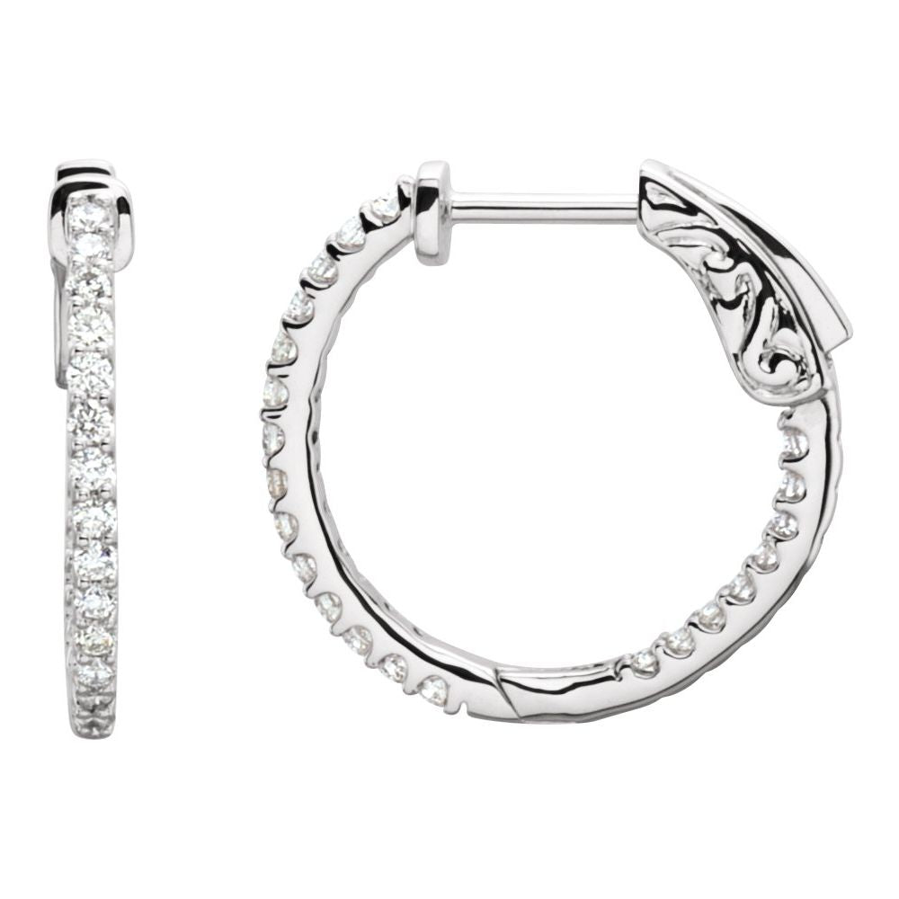 Platinum 1/2 CTW Natural Diamond Inside-Outside 19 mm Hinged Hoop Earrings