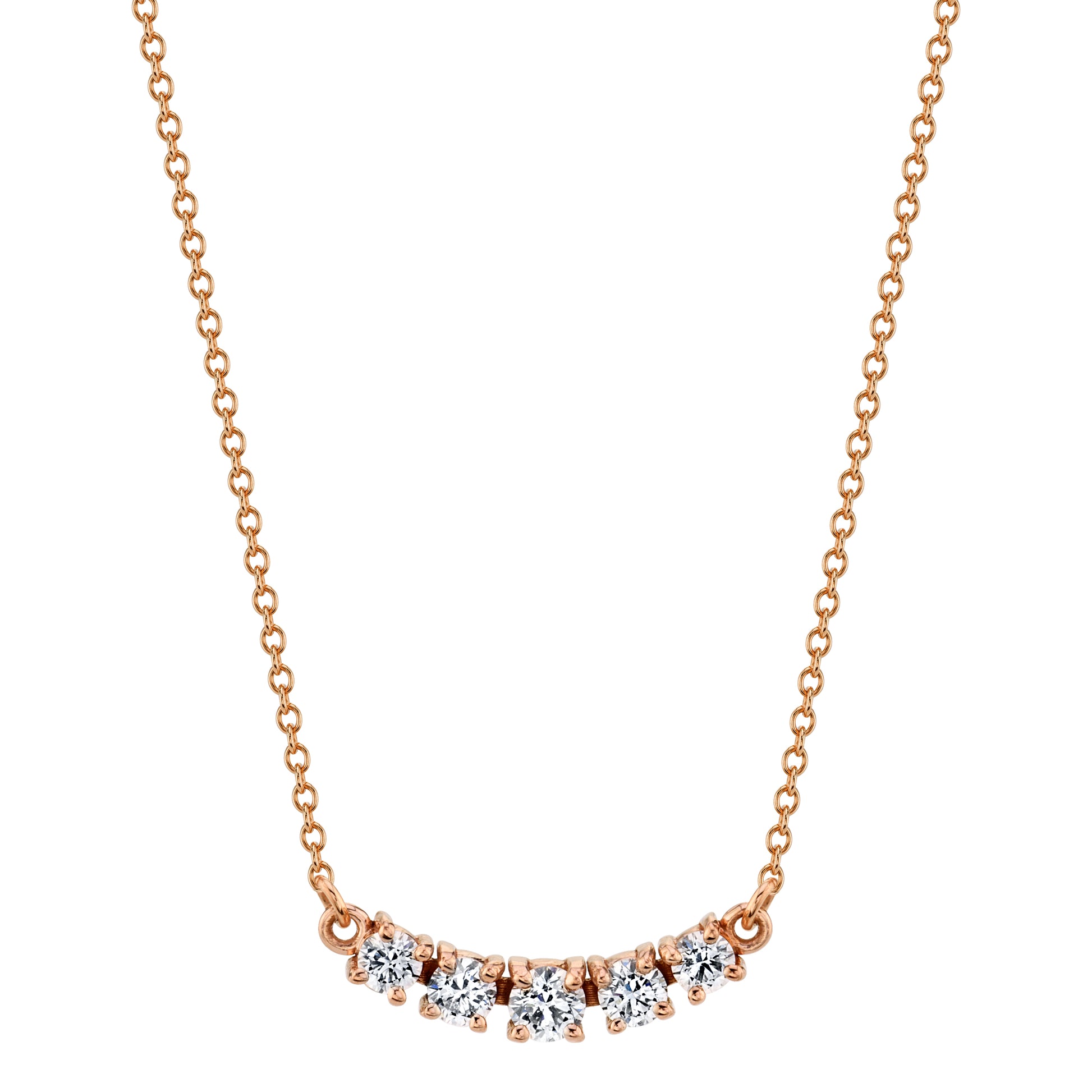 This 14k rose gold pendant features a stunning graduated design, adorned with approximately 0.28 carats of sparkling diamonds, adding elegant brilliance to any outfit.