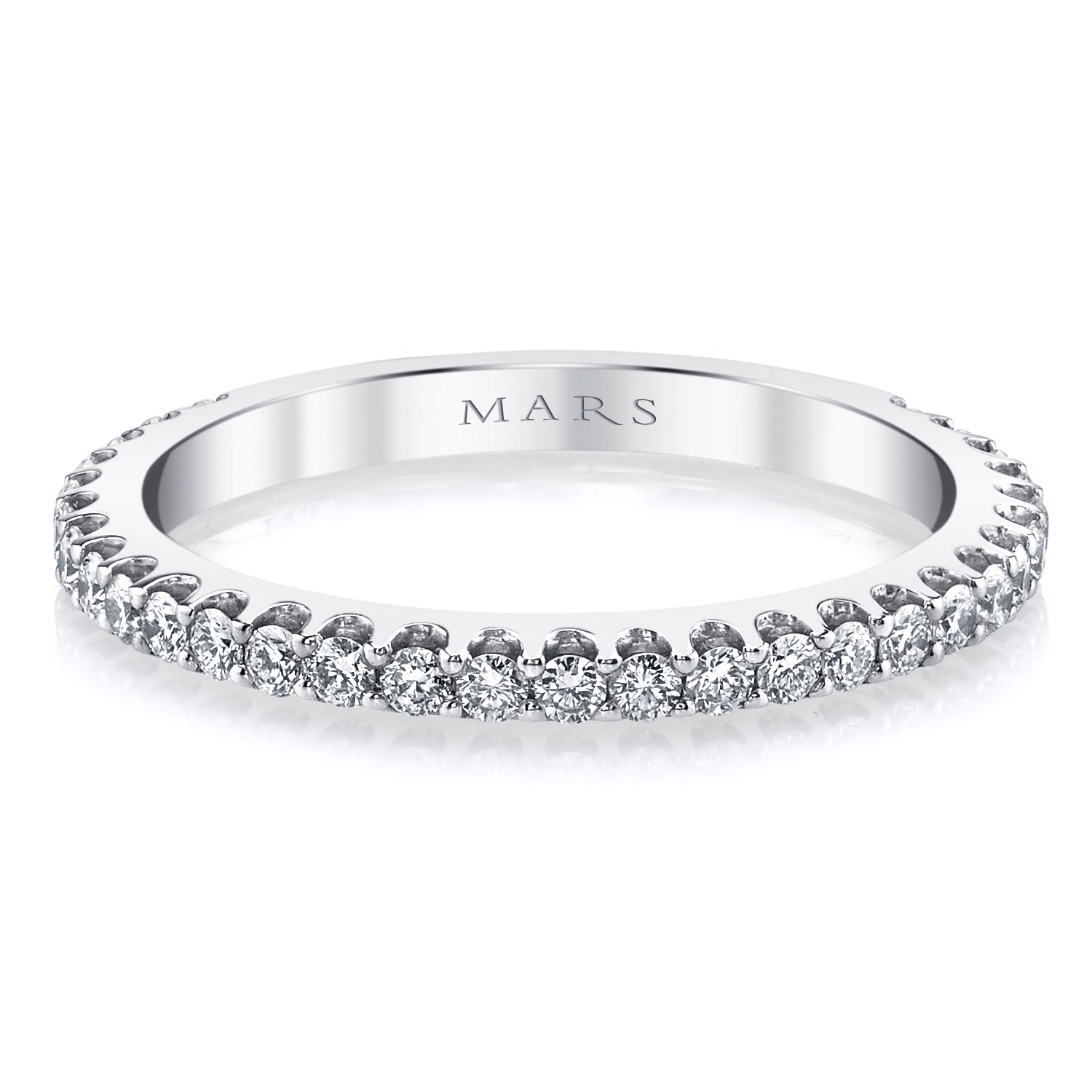 This 14K white gold band features 0.45 carats of round diamonds elegantly set along three-quarters of the ring, offering a stunning sparkle that enhances any look.