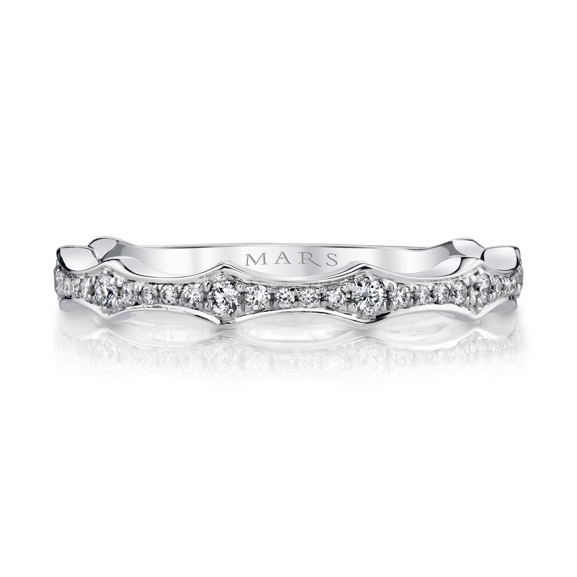 This 14K white gold band features a stunning Waves of Light design, adorned with 0.23 carats total weight of round diamonds, covering three-quarters of the band for a dazzling effect.