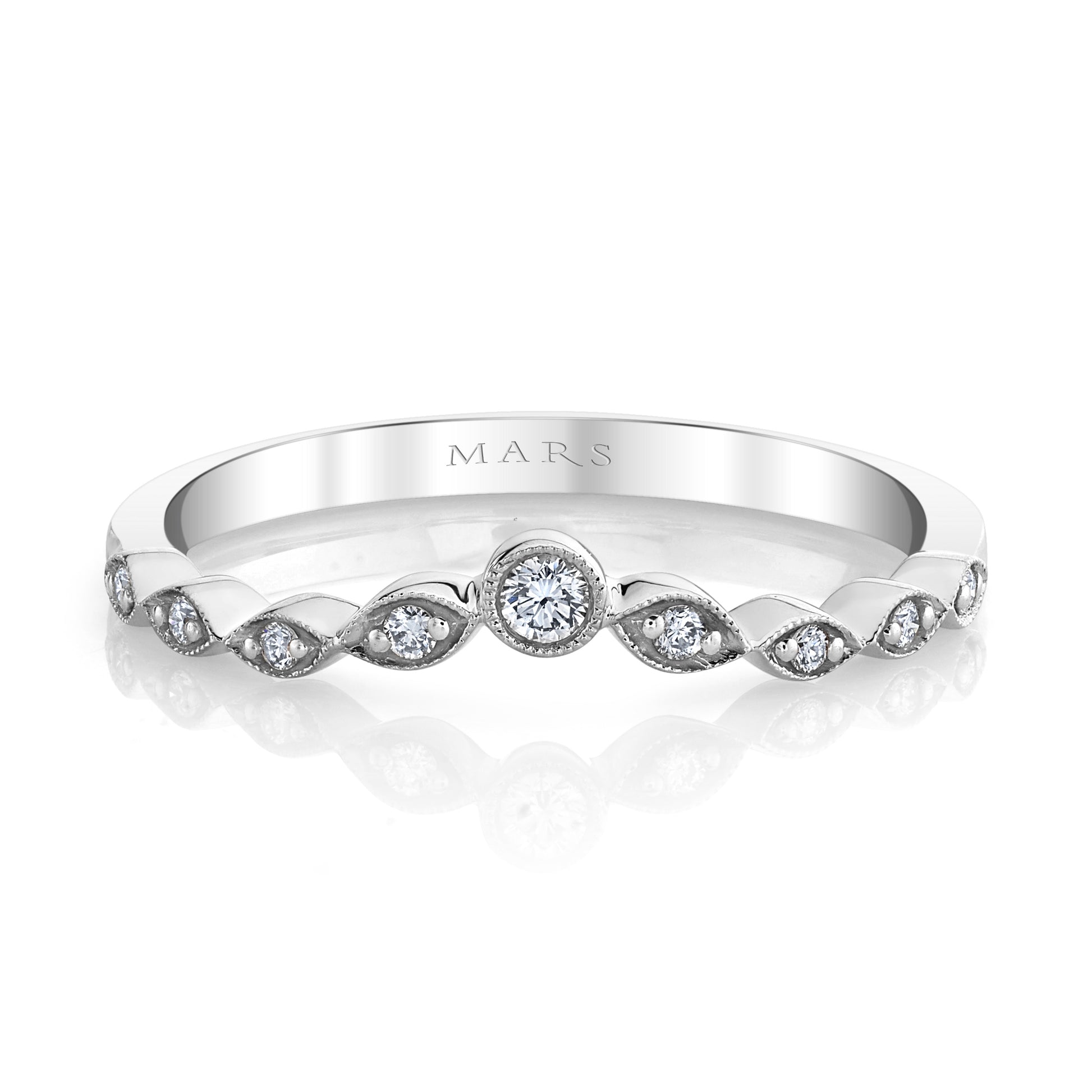 This delicate band crafted in 14K white gold features a refined filigree design and is adorned with 0.10 carats total weight of sparkling stones, offering a subtle yet elegant touch to any look.