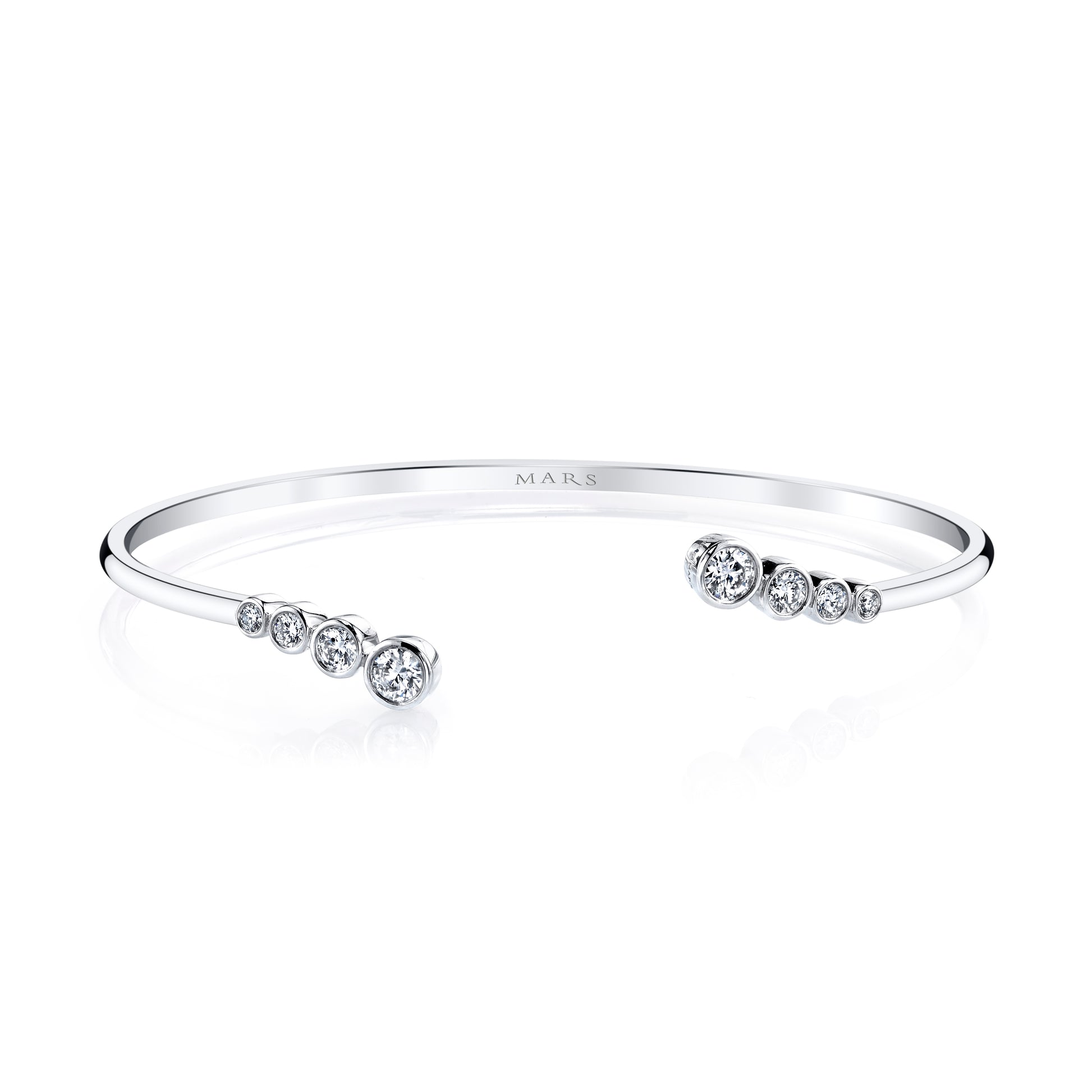 Experience the luxurious beauty of our 14k White Gold Bezel Cuff Bracelet, adorned with 0.76 CRT of stunning round diamonds. Elevate any outfit with this dazzling piece, a must-have for any jewelry collection.