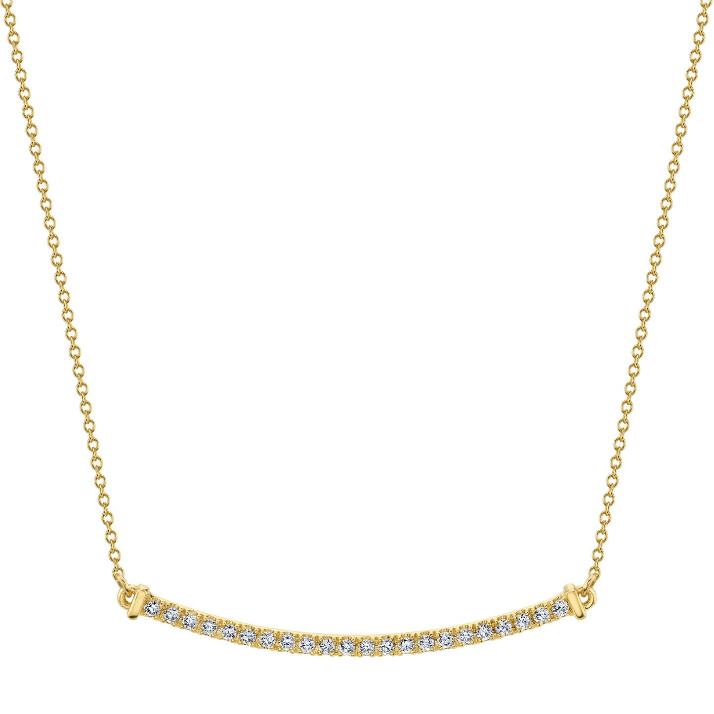 Elevate your style with this elegant 14k yellow gold curved bar pendant, featuring approximately 0.20 carats of sparkling diamonds. Its graceful curve and shimmering stones add a refined touch to any outfit, making it perfect for both everyday wear and special occasions. This pendant combines timeless design with subtle brilliance to enhance your natural beauty effortlessly.