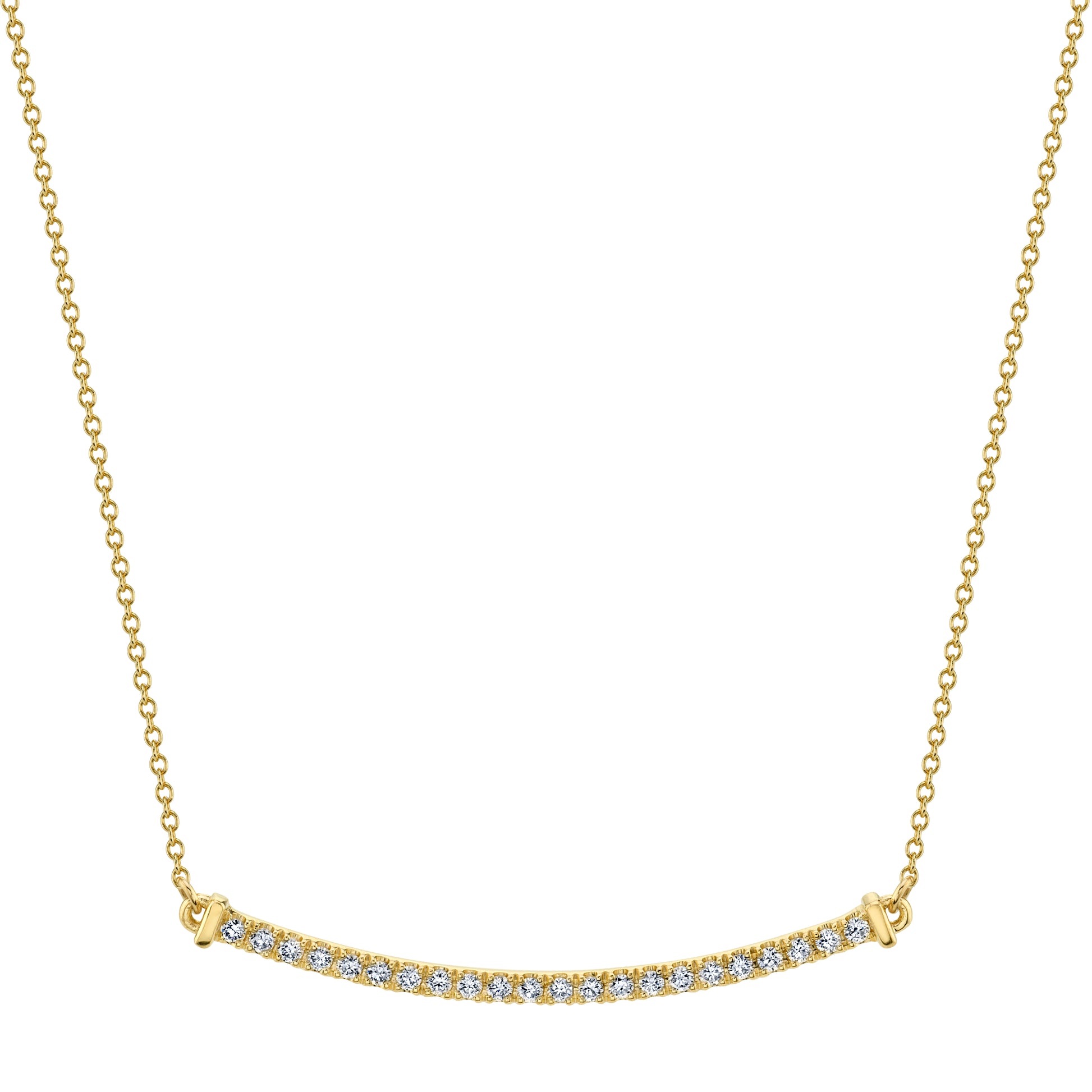 Yellow Gold Curved Diamond Bar Pendant