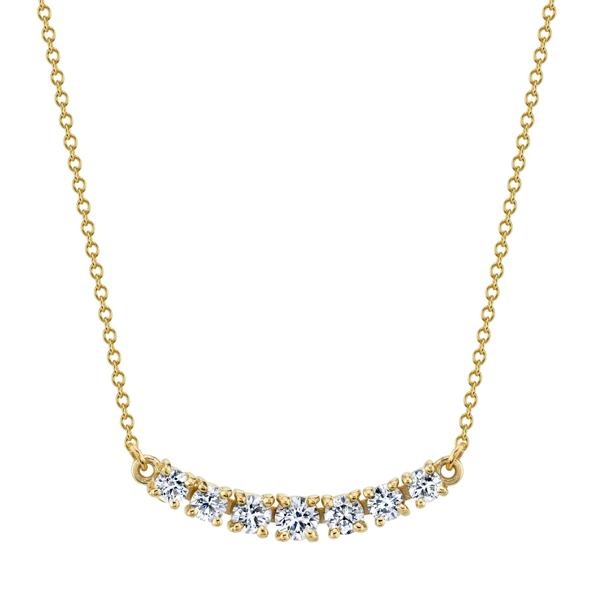 This 14k yellow gold pendant features a stunning graduated design adorned with approximately 0.35 carats of sparkling diamonds, adding elegant brilliance to any outfit.