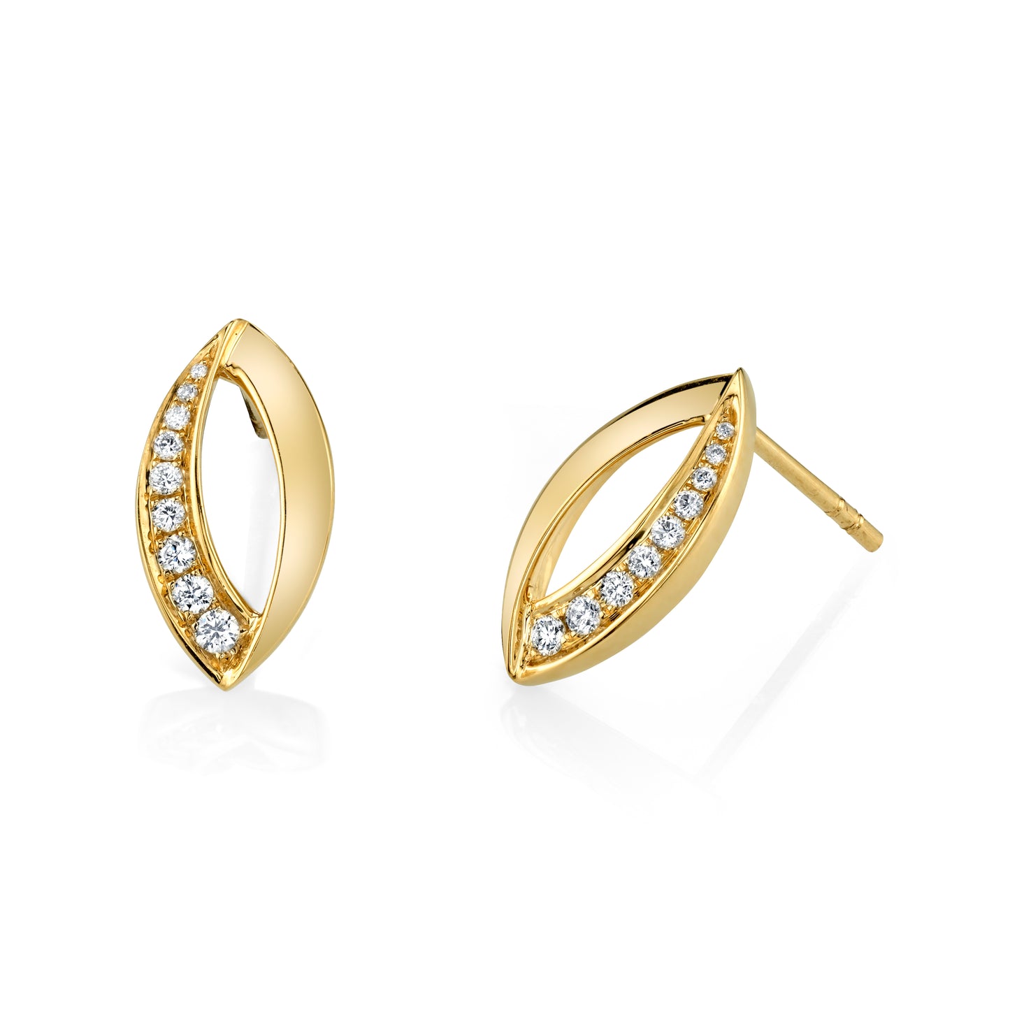 Crafted in 14k yellow gold, this open diamond stud features round diamonds totaling approximately 0.19 carats, offering a subtle yet captivating sparkle to elevate any look.